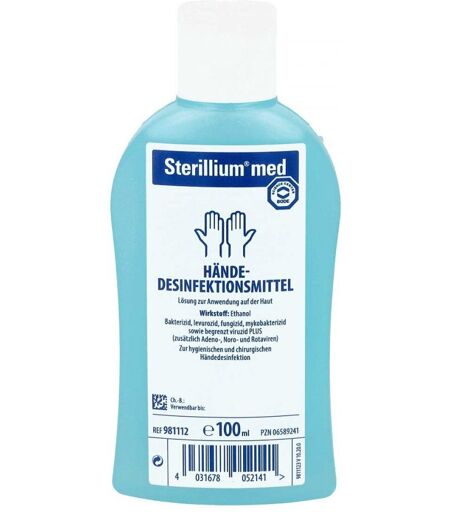 Das Desinfektionsmittel wird unverdünnt in die trockenen Hände eingerieben, dabei alle Hautpartien erfassen. Besonderes Augenmerk soll auf Fingerkuppen und Daumen gerichtet werden. Die Hände müssen während der gesamten Einreibezeit mit Sterillium med Lösung feucht gehalten werden.EinnahmeDas Präparat wird unverdünnt angewendet.Mit in-vitro und in-vivo Studien wurde nachgewiesen, dass das Präparat gegen eine Reihe von Bakterien und Pilze wirkt. Das Präparat reduziert während der hygienischen Händedesinfektion die transiente Hautflora innerhalb von 30 Sekunden zu über 99,99 % und wirkt darüber hinaus bei der chirurgischen Händedesinfektion auch gegen die residente Hautflora innerhalb von 1,5 Minuten.PatientenhinweiseWarnhinweise und Vors ...