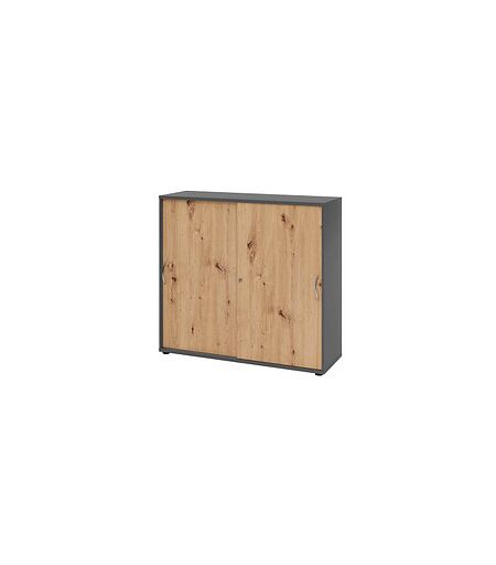 Für alle, die Ordnung lieben: HAMMERBACHER Schiebetürenschrank 1753S, V1753S/G/R/BM grafit, asteiche 2 Fachböden 120,0 x 40,0 x 110,0 cmDer HAMMERBACHER Schiebetürenschrank 1753S, V1753S/G/R/BM grafit, asteiche 2 Fachböden 120,0 x 40,0 x 110,0 cm ist für die Unterbringung Ihrer Akten eine gute Lösung. Auch bei engsten Platzverhältnissen finden Sie genügend Stauraum. Denn dank der Schiebetüren braucht dieser Schranktyp wesentlich weniger Platz als andere Modelle.Interessante Eigenschaften dieses ArtikelsDie erstklassigen Materialien und die guten Eigenschaften zeichnen dieses Möbelteil aus. Der Korpus besteht aus langlebigem Spanplatte und hat ein klassisches Design. Die Korpuswände haben eine Wandstärke von 1,6 cm. Die robuste Oberfläche mit einer Melaminharzbeschichtung ist kinderleicht zu reinigen und schützt vor Schrammen und Feuchtigkeit. Dank der perfekten Farbkombination mit dem Korpus in Grafit und der Front in Asteiche wird dieses Möbelstück zum Schmuckstück in Ihrem Raum. Damit Ihre Unterlagen sicher verwahrt sind, ist das Modell abschließbar.Platz für 3 OrdnerreihenWer seine Akten und Unterlagen übersichtlich aufgeräumt mag, ist mit diesem Möbelstück aufgrund der praktischen Fachböden gut beraten. Bei diesem Möbel sind Sie mit den 2 Fachböden aus Spanplatte bestens ausgestattet. Die Tragkraft dieser Fachböden beträgt 25,0 kg je Boden. Sie haben den Vorteil, dass man sie in einem Raster von 3,5 cm in der Höhe ganz nach Bedarf anpassen kann. Möchten Sie wissen, wie viele Ordnerreihen Sie hier unterbekommen? Hier erhalten Sie Platz für 3 Ordnerreihen.So öffnen Sie dieses MöbelobjektDas Öffnen und Schließen geht ganz bequem durch Bogengriffe. Die Griffe sind aus strapazierfähigem Metall.Weitere interessante EigenschaftenDie robuste Bauweise macht den HAMMERBACHER Schiebetürenschrank 1753S, V1753S/G/R/BM grafit, asteiche 2 Fachböden 120,0 x 40,0 x 110,0 cm stapelbar. Das schafft mit wenig Platzbedarf mehr zusätzliche Ablagefläche. Damit Sie das Möbelstück uneingeschränkt nutzen können, beachten Sie folgende Maße: Breite: 120,0 cmTiefe: 40,0 cmHöhe: 110,0 cmDas Gewicht liegt bei 61 kg. Ein weiterer Vorteil sind die variabel verstellbaren Sockelfüße. Sie sind ideal, um die Höhe auszugleichen, wenn z.B. der Untergrund uneben ist.Worauf Sie außerdem bauen könnenDie Lieferung dieses Möbelelements erfolgt teilzerlegt, der Aufbau ist jedoch unkompliziert. Im Lieferumfang enthalten: Mitteltrennwand.Hat dieses Produkt alle Eigenschaften, die Sie suchen?Dann bestellen Sie den HAMMERBACHER Schiebetürenschrank 1753S, V1753S/G/R/BM grafit, asteiche 2 Fachböden 120,0 x 40,0 x 110,0 cm gleich hier in unserem Online-Shop! ...
