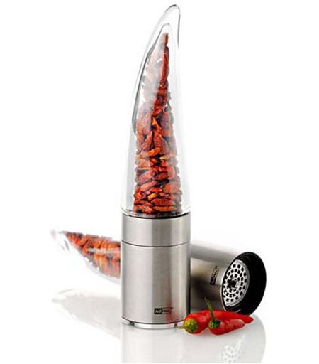 Die Chilimühle Pepe von AdHoc spricht schon optisch eine deutliche Sprache: For Chillies Only! Sie verfügt über ein spezielles Schneidwerk, das ausschließlich für das optimale Zerkleinern von getrockneten Chilis ausgerichtet ist. Pepe liegt wunderbar in der Hand! Der innovative Aromaschutzdeckel verschließt Pepe von unten – so bleiben Tisch und Arbeitsfläche sauber. Aromaschutzdeckel aus Acryl robust und handlich leicht zu reinigen Dazu besticht sie durch ihr außergewöhnliches und elegantes Acryl-Edelstahl-Design, bei dem der durchsichtige Kunststoffbehälter den Blick auf die Chilis frei lässt und das Gewürz selbst dadurch zum echten Eye-Catcher auf Ihrem Tisch wird. Warnhinweis: Lesen Sie aufmerksam die Sicherheitshinweise und benutzen Sie den Artikel nur wie in dieser Anleitung beschrieben, damit es nicht zu versehentlichen Verletzungen oder Schäden kommt. Bewahren Sie diese Anleitung zum späteren Nachlesen auf. Bei Weitergabe des Artikels ist auch diese Anleitung mitzugeben. Das Produkt ist kein Spielzeug. Halten Sie Kinder von Verpackungsmaterial fern. Es kann u.a. Erstickungsgefahr bestehen. ...