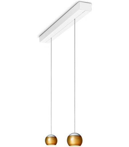 Oligo Balino LED Pendelleuchte mit unsichtbarer Höhenverstellung 2-flammig weiß Haube chrom matt / Glas gold