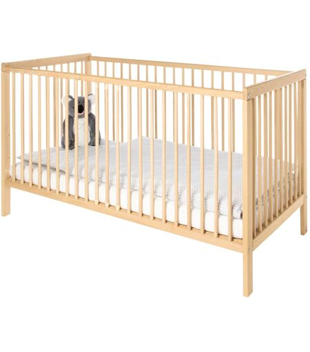 Das Babybett Hanna von Pinolino bietet Deinem Nachwuchs auf 70 mal 140 Zentimetern Liegefläche viel Platz, um entspannt zu schlummern. Lieferumfang: Babybett Hanna, 3-fach höhenverstellbarer Lattenrost, 3 Schlupfsprossen Material: Buche (vollmassiv, unbehandelt) Verwendung: ca. 0-3 Jahre Belastbarkeit: 35 kg Maße: 144(L) x 75(B) x 85(H) cm, Liegefläche 140(L) x 70(B) cm, Lattenrost-Höhe 20 – 34 – 46 cm Mit seiner gut sichtbaren Holzstruktur wird das Babybett Hanna von Pinolino aus vollmassiver unbehandelter Buche zum Blickfang eines jeden Kinderzimmers. Es ist besonders robust. Das Babybett Hanna ist ab Geburt bis ins Alter von ca. drei Jahren verwendbar. Das Bett ist mit maximal 35 Kilogramm belastbar. Der Lattenrost ist dreifach in der Höhe verstellbar von 20 auf 34 und auf 46 cm Höhe. So kann er angepasst werden, um Deinen Rücken beim Hineinlegen und Herausheben Deines Babys zu schonen. Wenn Dein Kind alt genug ist, genießt es aufgrund der drei Schlupfsprossen die Freiheit, selbst ins Bett oder aus ihm heraus zu gelangen. Garantie-Hinweis Informationen zu den Garantie-Bedingungen erhältst Du hier. ...