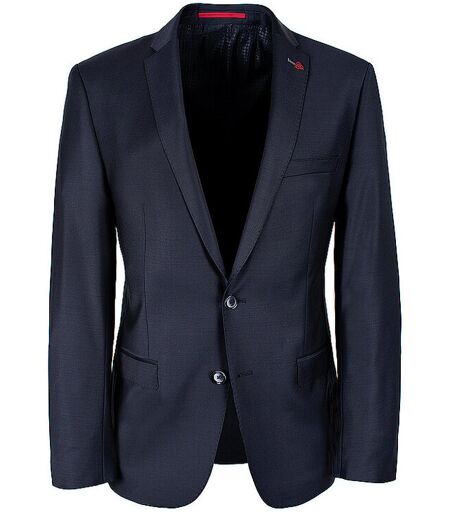 Das Herrensakko ist schmal geschnitten und verfügt über einen Reverskragen. Es ist ein Einreiher-Sakko mit einem Zwei-Knopf-Verschluss. Das Sakko hat eine Ziernaht in Handstich-Optik für ein stilvolles Detail. Auf der Vorderseite befinden sich eine Brustleistentasche und paspelierte Pattentaschen. Der Rücken des Sakkos hat einen Mittelschlitz, und die Ärmel haben Zierschlitze mit Kissing Buttons (geknöpfte Ärmelschlitze). Innen gibt es Leistentaschen. Das Sakko hat eine körpernahe Passform, was ihm einen modernen und eleganten Look verleiht. Farbe: A401 Dark Blue Material: 85% Schurwolle, 11% Polyamid, 4% Elasthan Futter: Triacetat 51%, Viskose 49% ...