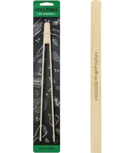 "Grillzange made in Germany mit eingebranntem Motiv und Spruch ""Papa grillt am Besten"". Für entspannte Stunden am Grill und im Garten für alle Hobbyköche und Grillmeister. Als Geschenk zum Geburtstag, zu Ostern, zum Vatertag oder einfach so. " ...