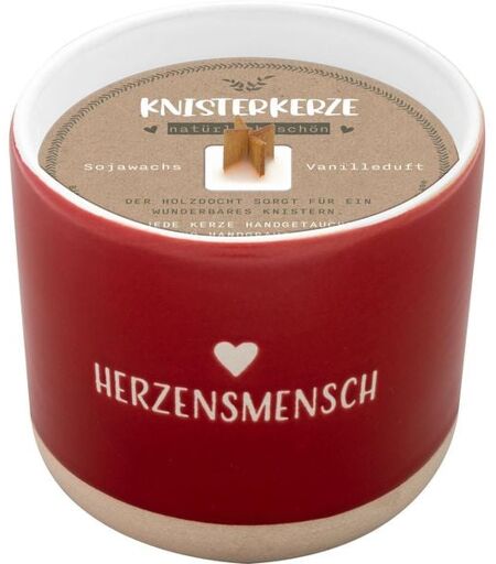 Sheepworld AG "Kerze mit Gravur ""Herzensmensch"": Kerze im Becher, mit Holzdocht"