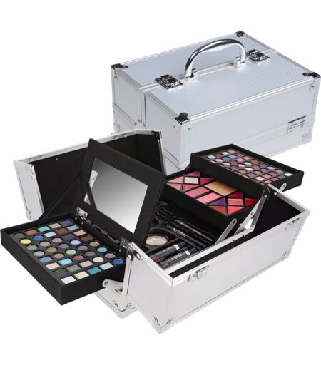ZMILE COSMETICS My Treasure Case, , Kosmetik-Sets für Damen, Alles für das perfekte Make-up in einem Set. Das Kosmetikset ZMILE COSMETICS My Treasure Case enthält nicht nur ein, sondern gleich mehrere Beauty-Produkte, die dabei helfen, Ihre regelmäßige Make-up-Routine zu erstellen oder zu bereichern. Ein Set voller dekorativer Kosmetik wird nicht nur Sie begeistern, sondern auch als Geschenk Ihre Lieben. Das Set beinhaltet: Lidschatten 80x0,6 g Cremegloss für die Lippen 14x1,1 g Puder-Rouge 2x2,7 g Highlighter 9,9 g Highlighter 5,1 g Nagellack 3x3,6 ml Lippenstift 2x3,3 g Eyeliner 5,6 ml Mascara 5,6 ml Eyeliner 1,2 g Lippenkonturenstift 1,2 g Pinsel 5 St. Spiegelchen 1 St. Eigenschaften: erfreut alle Frauen ideal für Reisen ein Mix aus Kosmetikprodukten für den täglichen Gebrauch komplette Routine für perfektes Aussehen perfekt für Tages- sowie Abend-Make-up ermöglicht verschiedenste Make-up-Versionen Zusammensetzung: ist vegan ...
