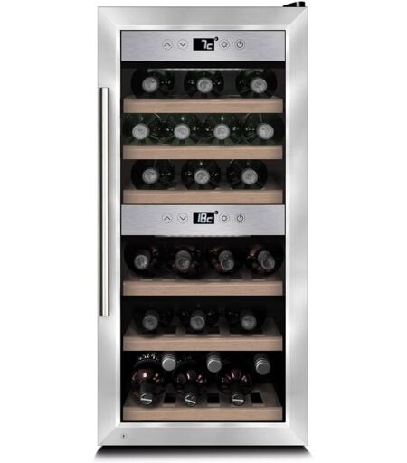 Produkt-Highlights:: Über das integrierte Wi-Fi Modul mit der CASO-App von praktisch überall bequem steuerbar; Zwei getrennte Temperaturzonen, einzeln regelbar für Weiß- & Rotwein; Sensor-Touch Steuerung; Aktive Lüfter je Temperaturzone für eine sehr gleichmäßige Temperatur pro Zone; 3-lagiges Isolier-Sicherungsglas mit UV-Filter für optimalen Aromaschutz; Verbrauchs-EigenschaftenAngabe gem. EU-Verordnung 2019/2016; Energieeffizienzklasse G; Spektrum [A bis G]; 133 kWh/Jahr Energieverbrauch; Leistungseigenschaftenoptionale Smart Home Funktion; steuerbar über App; Anschlusswert: 60 W; Geräusch-Schallleistung: 38 dBA; Geräuschemissionsklasse C; min. Temp. in der wärmsten Zone: 5 °C; max. Temp. in der wärmsten Zone: 20 °C; 2 getrennte Temperaturzonen; elektronische Temperaturregelung; 1 Kompressor(en); 220-240V 50/60Hz Netzanschluss; BedienungTemperatur-Digital-Anzeige; Innenraum-AusstattungUmluft-Kühlen; Innenraum-Beleuchtung; Innenraum-Beleuchtung separat schaltbar; 6 Abstellrost(e)/-fläche(n); davon 1 Bodenrost; 5 Abstellfläche(n) ausziehbar; FassungsvermögenFassungsver. für 24 0,75 l-Weinflaschen; Gehäuse-EigenschaftenBreite: 39,5 cm; Höhe: 87,5 cm; Tiefe: 59,5 cm; Leergewicht: 35,7 kg; abschließbare Tür; 3-fach isolierte Glas-Tür; UV-Filter; Farbenedelstahl; ...