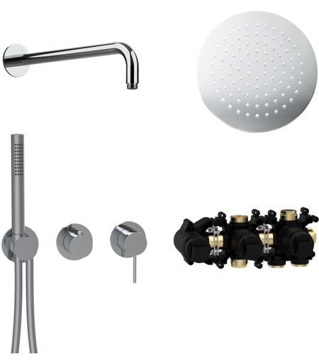 "herzbach MODUL7 Hebelmischert-Set H-RB250 mit Regenbrause und Stabhandbrause zum Einsatz im Duschbereich SET-UMFANG 70.720002.1.09 MODUL7 Hebelmischer-Einbaukörper 70.702002.1.01 MODUL7 Hebelmischer-Farbset für 2 Verbraucher 11.960350.1.01 LIVING SPA Wandarm 350 mm, Ø 70 mm 11.600250.1.01 LIVING SPA Slim-Regenbrause Ø 250 mm MODUL7 Hebelmischer-Einbaukörper -für 2 Verbraucher MODUL7 Hebelmischer -leichtgänige LOGIC-SoftEmotion Keramikkartusche -stufenlose Mengen- und Temperaturregulierung -Messing Bediengriff -Messing Modulblende Ø 70 mm MODUL7 Ab- und Umstellventil -keramischer 2 Wege-Umsteller -leichtgängige und stufenlose Mengenregulierung mit geringem Bedienradius -komfortabel getrennte Verbraucherwahl durch haptischen Rastpunkt -Messing Bediengriff -Messing Modulblende Ø 70 mm MODUL7 Brausehalterset -Brauseanschlussbogen mit verdecktem Schlauchanschluss -MODUL7 Brauseschlauch 1500 mm mit Drehkonus -1-strahlige Messing-Stabhandbrause -Messing Modulblende Ø 70 mm LIVING SPA Wandarm -Ausladung 350 mm -Formgebung rund abgewinkelt -1/2"" Anschlussgewinde -Messing-Blende Ø 70 mm LIVING SPA Slim-Regenbrause -Durchmesser Ø 250 mm -Clean-Effect Modul-Mittenabstand 105 mm min. Betriebsdruck: 0,5 bar max. Betriebsdruck: 5 bar integrierte Rückflussverhinderer und Schmutzfangsiebe eigensicher gegen Rückfließen Oberfläche Chrom Hersteller herzbach / Warengruppe M7 SETS CHROM Art-Nr. 70.702712.1.01" ...