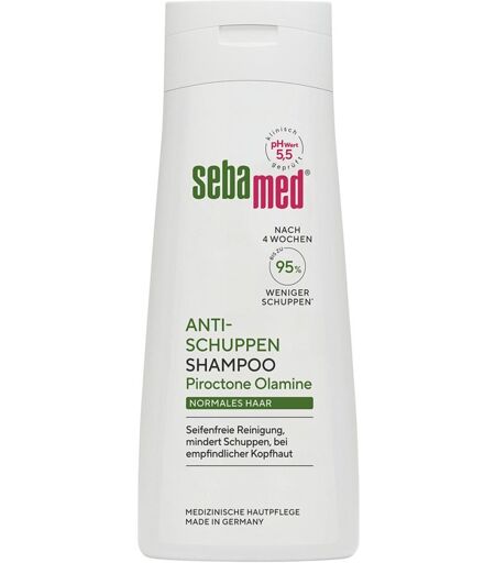 Anwendungsgebiet von Sebamed Anti Schuppen ShampooSebamed Anti Schuppen Shampoo - bis zu 95% weniger Schuppen nach nur 4 Wochen, für normales Haar, zur täglichen Haarwäsche geeignet, Schuppen Shampoo für Männer und FrauenDEUTLICH WENIGER SCHUPPEN NACH NUR 4 WOCHEN: Eine klinische Studie bestätigt: Bis zu 95% weniger Kopfschuppen schon nach nur 4 Wochen, Studie “Antischuppen-Wirkung” Institut Dr. Schrader 2006. Das Sebamed Antischuppen Shampoo mit seinem hochwirksamen Wirkstoff Piroctone Olamine beseitigt nachweislich Schuppen.GUT FÜR´S HAAR UND DIE KOPFHAUT: Die speziell entwickelte TensidKombination hilft, Reizung und Austrocknung von Kopfhaut und Haar zu vermindern. Auch für fettiges Haar geeignet.FÜR GESUNDE HAUT: Der pH-Wert 5,5 von sebamed stärkt die Funktion des natürlichen Hautschutzmantels auch gegen schädliche Umwelteinflüsse und trägt zur Gesunderhaltung der Haut bei.QUALITÄT MADE IN GERMANY: Unsere Produkte werden in Deutschland entwickelt, getestet und hergestellt. Die Qualität ist durch ausgewählte Rohstoffe und kontrollierte Fertigungsprozesse garantiert. Sebamed Produkte sind in über 400 Studien dermatologisch-klinisch getestet.DERMATOLOGISCH-KLINISCH BESTÄTIGT: Sebamed Produkte helfen, den natürlichen Hautschutzmantel zu stabilisieren und die Haut widerstandsfähiger gegen Umweltreize zu machen. Die Verträglichkeit und Pflegewirkung sind dermatologischklinisch geprüft und bestätigt. Dadurch trägt diese Pflegeserie nachweislich dazu bei, das Risiko für Hautreaktionen spürbar zu vermindern.UNSER UMWELTVERSPRECHEN: 0 % Mikroplastik 0 % Silikone 0 % PEG, VEGANWirkstoffe / Inhaltsstoffe / ZutatenSebamed Anti Schuppen Shampoo enthält: