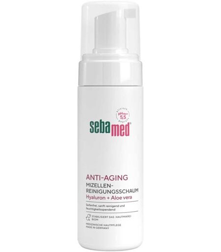 Anwendungsgebiet von Sebamed Anti-aging Mizellen-reinigungsschaumSebamed Anti-aging Mizellen-reinigungsschaum reinigt sanft und gründlich die Gesichtshaut. Der erfrischende Reinigungsskomplex mit Aloe vera und Hyaluron spendet Feuchtigkeit und verleiht der Haut ein frisches und geschmeidiges Hautgefühl. Die Haut wird beruhigt und vor dem Austrocknen bewahrt. Auch zu Make-Up Entfernung geeignetWirkungsweise von Sebamed Anti-aging Mizellen-reinigungsschaumDie Speziellen Wirkstoffe in Sebamed Anti-aging Mizellen-reinigungsschaum sorgen dafür, dass Glätte und Spannkraft länger erhalten bleiben und die Haut besser vor schädlichen, alterungsfördernden Umwelteinflüssen geschützt ist. So hilft der Reinigungsschaum vorzeitige Alterungsprozesse zu verzögern.