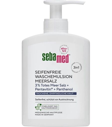 Ideal dafür eignen sich die medizinischen Hautpflegeprodukte von sebamed mit dem pH-Wert 5,5. Sie fördern den hauteigenen Schutzmantel und machen die Haut dadurch widerstandsfähiger gegen die Belastungen, denen sie ständig ausgesetzt ist. BESONDERS MILDE REINIGUNG: Die Sebamed Meersalz Wasch-Emulsion sorgt für eine besonders milde Reinigung der trockenen und empfindlichen Haut und wirkt der Austrocknung entgegen. Ein Pflegekomplex auf Basis von original Totes Meer Salz Mineralien in Verbindung mit Panthenol und Pentavitin hilft, Entfettung, Austrocknung und Irritation der Haut zu vermeiden. Für Hand, Gesicht und Körperpflege geeignetMIT ORIGINAL TOTEM MEERSALZ: Das Besondere an der Produktlinie SEBAMED Meersalz ist ihr Gehalt von 3 % Totes Meer Salz. Meersalz mit seinen lindernden und regenerierenden Eigenschaften ist dafür bekannt, das Hautbild nachhaltig zu verbessern.FÜR GESUNDE HAUT: Der pH-Wert 5,5 von sebamed stärkt die Funktion des natürlichen Hautschutzmantels auch gegen schädliche Umwelteinflüsse und trägt zur Gesunderhaltung der Haut bei.STABILISIERT DAS HAUTMIKROBIOM: Die Mikroorganismen der Haut leben in einem gut eingespielten ökologischen Gleichgewicht. Sebamed Produkte mit ihren schonenden Rezepturen, milden Inhaltsstoffen und dem pH-Wert 5,5 helfen, ...