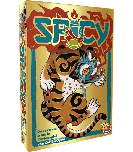 Spicy ist ein Bluff-Kartenspiel für 2-6 Spieler. Die Karten werden verdeckt ausgespielt, sodass man bei der Ansage seiner Karte schon mal flunkern kann. Doch bei diesem cleveren Kartenspiel geht es nicht einfach nur darum, überzeugend zu bluffen. Denn eine Karte, die zumindest halb richtig ist, kann man bei geschicktem Abspielen von der Kartenhand fast immer spielen. Da gilt es taktisch zu überlegen, mit welcher Karte man wohl durchkommt. Neben dem eigentlichen Spiel enthält Spicy 6 Spielvariantenkarten, doch auch ohne diese ist ein hoher Wiederspielreiz garantiert. Die Karten sind liebevoll mit insgesamt 40 eigenständigen Illustrationen versehen. Außerdem glänzt nicht nur die Spielschachtel in schickem Metallic-Gold, sondern auch die Kartenrückseiten ziert ein goldfarbener Sonderdruck. ...