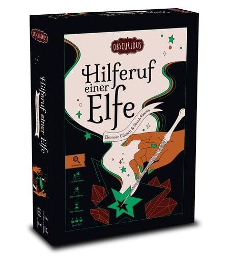 "Ihr wolltet schon immer einmal die Hauptfigur einer Fantasy-Geschichte sein? Dann taucht ein in die Zauberwelt und löst einen magischen Fall, den ihr so vorher noch nie gesehen habt! Echte Briefe, Zeitungen, Visitenkarten uvm. versetzen euch in ein immersives Abenteuer ! Das Material wird dabei nicht zerschnitten o.ä., sodass ihr den Fall nach eurem Spiel an Familie oder Bekannte weitergeben könnt. Story Ein rätselhaftes Verbrechen macht Schlagzeilen in der Zauberwelt und es scheint Vorbote eines weit schlimmeren Vorhabens zu sein, welches nur Ihr verhindern könnt. Zum Glück wendet sich die Elfe der Hauptverdächtigen an den Orden, der ihr Anliegen an euch weitergibt. Nur ihr allein könnt es jetzt noch schaffen, Elfies gesammelte Informationen richtig zu kombinieren und den Verantwortlichen auf die Schliche zu kommen! Multimediales Abenteuer Ein zauberhafter Fall Einzigartiges Spielerlebnis Internetzugang erforderlich 1–4 Personen ab 14 Jahren 120 Minuten Schwierigkeit: Fortgeschrittene (2 von 3) Das Spiel wurde zu 100% in Deutschland entwickelt, produziert und gepackt. Wie funktioniert dieses Krimispiel? In diesem Krimispiel, geht es darum, gemeinsam als Team verschiedene Unterlagen zu durchforsten, um herauszufinden, welche verdächtige Person ein Motiv oder ein Alibi hat. In spannender Detektivarbeit müssen Informationen kombiniert und so die schuldige Person überführt werden. Krimispiel vs. Escape-Spiel „Hilferuf einer Elfe“ ist ein Krimispiel, bei dem verschiedene Unterlagen durchforstet werden müssen, um gemeinsam als Team herauszufinden, welche verdächtige Person ein Motiv oder ein Alibi hat. In spannender Detektivarbeit muss die schuldige Person überführt werden. Falls ihr lieber Rätsel lösen, als Informationen kombinieren möchtet, empfehlen wir euch eins unserer Escape-Spiele (""Das magische Siegel"" oder ""Abgetaucht""). Spielhäufigkeit Das Spiel “Hilferuf einer Elfe” könnt ihr nur einmal spielen, da ihr danach die Lösung kennt. Das Material wird jedoch nicht zerstört, sodass ihr den Fall noch an Familie und Bekannte weitergeben könnt. Dafür empfehlen wir euch, eure Ermittlungen auf Notizzettel zu schreiben, anstatt das Material selbst zu beschriften. Internetzugang Beim Spielen ist ein Internetzugang dringend erforderlich. Auch Tipps und die Auflösung des Falls findet ihr auf unserer Homepage. Für das beste Spielerlebnis empfehlen wir, dass ihr euch an einem Ort trefft und gemeinsam den Fall löst. Falls dies für euch aber nicht möglich ist, lässt sich das Spiel auch gut per Skype/Zoom/etc. spielen, solange jedes Team ein Spielexemplar vor sich liegen hat. " ...
