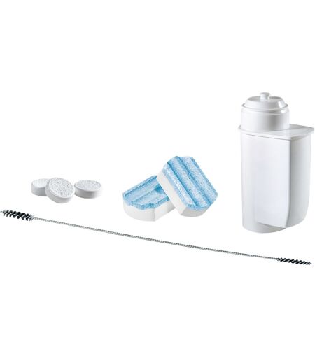 Dieses praktische Pflegeset von Bosch enthält alle Komponenten, die man für die optimale Pflege und Reinigung eines Kaffeevollautomaten benötigt. Im Lieferumfang enthalten sind zehn Reinigungstabletten, drei Entkalkungstabletten, ein BRITA Intenza Wasserfilter sowie eine spezielle Reinigungsbürste für Milchschlauch und -steigrohr. Es eignet sich für alle Kaffeevollautomaten der Vero Serie, sowie Einbauvollautomaten von Bosch. ...