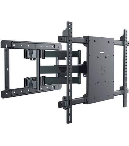 Die neig- und schwenkbare Wandhalterung BrackIT XXL HD II eignet sich für große Bildschirme mit 165 - 249 cm (65 – 98") Bildschirmdiagonale sowie einem Maximalgewicht von 140 kg. Die Montage kann wahlweise in Landscape- oder Portrait-Ausrichtung erfolgen und mit einem Wandabstand von 50 mm kann sie besonders flach montiert werden. Der Neigungswinkel der Halterung kann montageseitig stufenlos zwischen -6° und +7° variiert werden, zudem ist sie, abhängig von der Größe des montierten Bildschirms, bis zu ± 45° schwenkbar. ...