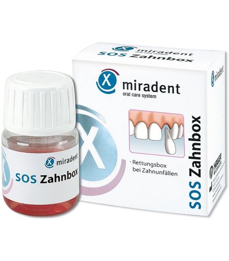 InformationWas ist die Miradent SOS Zahnbox und wofür wird sie verwendet?Die Miradent SOS Zahnbox ist ein unverzichtbares Hilfsmittel zur sicheren Aufbewahrung von ausgeschlagenen oder abgebrochenen Zähnen und Zahnfragmenten. Sie wurde speziell entwickelt, um Zähne nach einem Unfall oder einer Verletzung optimal zu schützen und die Chancen auf eine erfolgreiche Wiederimplantation zu maximieren. Die Zahnbox enthält eine spezielle Nährlösung, die den Zahn oder das Zahnfragment feucht hält und die empfindlichen Zellen des Zahnschmelzes sowie der Wurzelhaut schützt.Die Miradent SOS Zahnbox ist ideal für den Einsatz in Notfallsituationen, sei es im Alltag, beim Sport oder auf Reisen. Sie sollte in keiner Hausapotheke, Sporttasche oder im Erste-Hilfe-Set fehlen.Wie funktioniert die Miradent SOS Zahnbox?Die Zahnbox ist mit einer speziell entwickelten Zellnährlösung ausgestattet, die den Zahn bis zu 48 Stunden funktionsfähig hält. Diese Lösung versorgt den Zahn oder das Zahnfragment mit den notwendigen Nährstoffen, um die Wurzelhautzellen vital zu halten. Dies ist entscheidend, um den Zahn später wieder erfolgreich einzusetzen und die Heilung zu fördern.Durch die sichere und hygienische Aufbewahrung in der Zahnbox wird verhindert, dass der Zahn austrocknet oder durch äußere Einflüsse weiter beschädigt wird.Für wen ist die Miradent SOS Zahnbox geeignet?Die Miradent SOS Zahnbox ist ideal für:– Eltern, die für Notfälle bei Kindern, z. B. in der Schule oder beim Spielen, vorbereitet sein möchten. – Sportler, insbesondere in Kontakt- und Mannschaftssportarten wie Fußball, Handball oder Hockey. – Schulen, Sportvereine und Kindergärten, die eine schnelle Erste-Hilfe-Maßnahme bei Zahnunfällen bereitstellen möchten. – Alle, die eine praktische Lösung zur Rettung von ausgeschlagenen Zähnen oder Zahnfragmenten suchen. Wie wird die Miradent SOS Zahnbox angewendet?Die Anwendung der Miradent SOS Zahnbox i ...