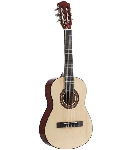 Das ideale Einsteigerinstrument für Kinder! Einfache Anfängergitarre in kindgerechter Größe, damit sie das Instrument gut greifen und spielen können. Konzertgitarre in klassischer Optik: - Decke: Linde, hell, laminiert - Zarge und Boden: Linde, rotbraun getönt - Griffbrett und Steg: Pappel, schwarz getönt - offene Mechaniken mit Acryl-Knöpfen - Bundstäbchen: Edelstahl, seitliche Bundmarkierung - Lackierung: hochglanz Größe: 530 mm Mensur 45 mm Sattelbreite 870 mm Gesamtlänge Ab 6 Jahre Verpackt im farbigen Verkaufskarton. ...