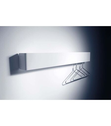 Die kompromisslose Eleganz der Radius Design Radius 2 Garderobe liegt in ihrer schlichten Form und praktischen Anwendung. Eines ist den Designern Kressel + Schelle bewusst: Der erste Eindruck zählt! Deshalb haben sie eine Garderobe entworfen, die auf den ersten Blick als keine solche erscheint. Ihre Besucher sehen beim betreten Ihrer Wohnung keine Kleiderhaken, sondern lediglich die schlichte Blende der Radius Design Radius 2 Garderobe aus pulverbeschichtetem Stahl. Versteckt dahinter befinden sich 9 Haken an denen Sie Ihre Jacken und Mäntel schnell und direkt aufhängen können. Sollten Sie sich doch für Kleiderhaken entscheiden, so verschwindet der obere Teil dieser hinter der Blende. Sperrige Garderobenschranktüren sind somit überflüssig, da die Radius Design Garderobe Radius II die optische Ruhe im Raum durch die schlichte Frontseite beibehält. Die Radius Des... ...