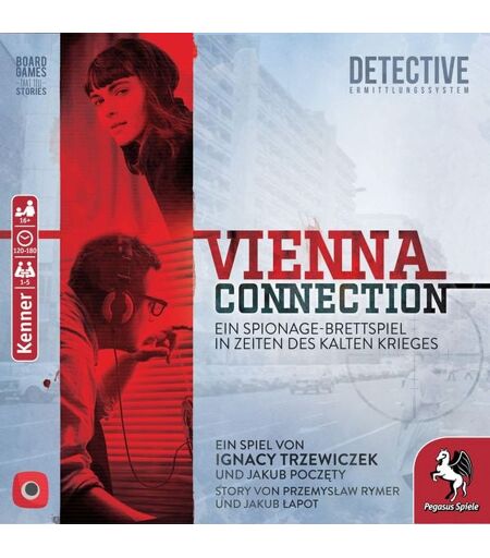 "Wien, 17. Januar 1977. Die übel zugerichtete Leiche eines Amerikaners wird gefunden. Bei der Untersuchung entdeckt die österreichische Bundespolizei eine Codekarte. 2. Februar 1977. Ein Team von CIA-Agenten trifft auf dem Flughafen Wien-Schwechat ein. Die Mission ""Weiße Biene"" beginnt. Vienna Connection ist ein kooperatives Deduktionsspiel, das zu Zeiten des Kalten Krieges spielt. Die Spieler leiten ein Team von CIA-Agenten, die verdeckte Operationen in ganz Mitteleuropa durchführen, Informationen sammeln, Spuren nachgehen und Daten analysieren, um eine Reihe von Missionen zu erfüllen. Vienna Connection wurde inspiriert von wahren Begebenheiten und basiert auf dem Investigationssystem von Detective - Ein Krimi-Brettspiel. Statt mit der digitalen Antares-Datenbank findet die Detektivarbeit jedoch stilecht analog statt. Den Spielern steht dazu ein Aktenstapel mit fast 100 Dokumentseiten zur Verfügung. Die faszinierende Geschichte führt das CIA-Team im Verlauf von vier Mission in vier mitteleuropäische Länder." ...