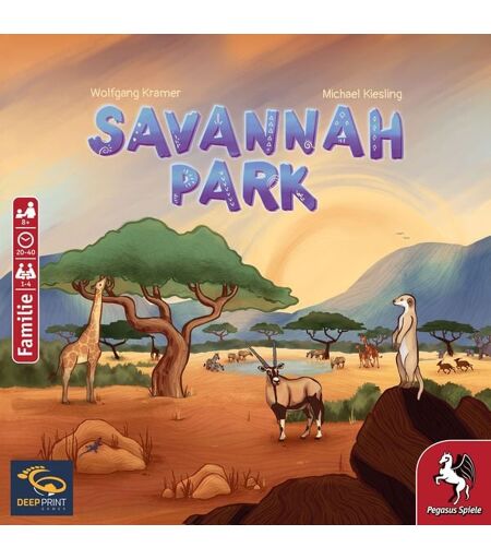 Mitten im Herzen Afrikas liegt ein unvergleichlich schönes Naturparadies. In diesen endlosen Weiten leben nicht nur die größten Landtiere Afrikas, sondern es präsentiert sich den Besuchenden auch eine herausragende Landschaft. Auf diesem herrlichen Stück Erde wetteifern die Spieler darum, wer den eigenen Park am erfolgreichsten zu optimieren weiß. Dazu müssen sie den Tieren helfen, sich mit ihresgleichen in möglichst großen Herden zu versammeln, indem sie neu platziert werden. Auch der Zugang zu den Wasserstellen ist essentiell, um den Wert der Herden zu vervielfachen. Außerdem müssen die Spieler sicherstellen, dass den Tieren Buschbrände nicht gefährlich werden. Hilfreich sind auch die schattenspendenden Bäume und die saftigen Gräser. Je mehr ein Park am Spielende davon besitzt, desto besser. Sobald alle Tiere einen neuen Platz gefunden haben, endet das Spiel mit einer Schlusswertung. Es gewinnt, wer die meisten Punkte sammeln konnte. Savannah Park ist ein interaktives Puzzle mit wunderschönem Artwork von Annika Heller. Das Brettspiel des vielfach ausgezeichneten Spieldesign-Duos Wolfgang Kramer und Michael Kiesling bietet mit einfachen Regeln Spielspaß für Familien, erfahrene Spielegruppen und Solospiele. Varianten sorgen für neue Herausforderungen und einen hohen Wiederspielreiz. ...
