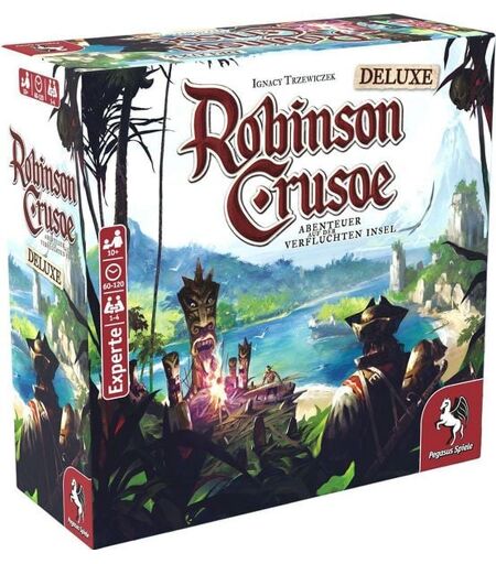 """Diese Deluxe-Ausgabe des Brettspiels """"Robinson Crusoe"""" bietet ein immersives Abenteuererlebnis. Spieler werden zu Gestrandeten auf einer unbewohnten Insel und müssen überleben, indem sie Herausforderungen meistern, die durch das Spielgeschehen entstehen. Ideal für Strategie- und Kooperationsliebhaber.""" ...