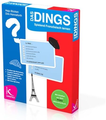 Vokabellernen neu erfunden! DAS DINGS: Spielend Französisch lernen setzt die Erfolgsreihe DAS DINGS fort. Unzählige Spielerinnen und Spieler der Reihe können bestätigen: Spielspaß und Lernerfolg sind garantiert. Die Spielerinnen und Spieler lernen, wie Dinge auf Französisch umschrieben werden können. Schon bekannte Begriffe des Grundwortschatzes werden wiederholt, geübt und dadurch gefestigt. Andere, noch unbekannte Wörter können aus dem Kontext neu erschlossen und in den vorhandenen Wortschatz aufgenommen werden. So erfolgt eine spielerische Erweiterung des französischen Wortschatzes. Zusätzlich wird das Lesen und Aussprechen französischer Wörter geübt und ein sinnentnehmendes Zuhören gefördert. Denn nur durch deutliche Aussprache und gutes Zuhören ist das Erraten eines DINGS überhaupt möglich. So geht’s: Die Regeln sind schnell erklärt: Eine Person liest nach und nach die sechs französischsprachigen Hinweissätze auf jeder Karte vor. Die anderen raten, welcher Begriff sich hinter den Hinweisen verstecken könnte – so lange, bis das versteckte DINGS, ce truc, gefunden ist. Die zu erratenden Begriffe gehören zum Grundwortschatz Französisch und sind gezielt aus dem PONS Bildwörterbuch Französisch ausgewählt. Das Spiel umfasst die folgenden 15 Kategorien: Frankreich (France) Berufe (métiers) Schule (école) Mahlzeiten (repas) Zuhause (chez nous) Hobby (loisirs) Körper (corps) Kleidung (vêtements) Einkaufen (courses) Familie (famille) Tiere (animaux) Reise (voyage) Wetter (météo) Sport (sports) Stadt (ville) DAS DINGS: Spielend Französisch lernen kann im Französischunterricht vielfältig eingesetzt werden: Es eignet sich als Warm-up am Beginn einer Unterrichtsstunde, zur Festigung des Wortschatzes am Ende eines bestimmten Themas sowie zur sinnvollen Gestaltung von Vertretungsstunden im Fach Französisch. ...
