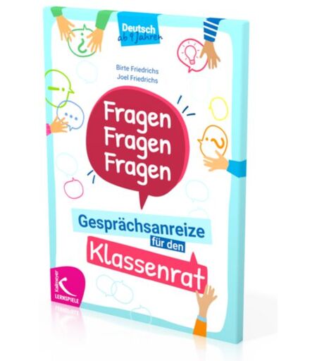Fragen, Fragen, Fragen ist ein tiefgründiges, witziges und manchmal absurdes Fragespiel, das Impulse für Gespräche im Klassenrat bietet. Mit Fragen, Fragen, Fragen: Gesprächsanreize für den Klassenrat trainieren Sie Konfliktlösung und konstruktive Gesprächsführung. stärken Sie die Klassengemeinschaft durch zielgerichteten Austausch. ermöglichen Sie Partizipation durch Auseinandersetzung. erleichtern Sie den Einstieg in den Klassenrat durch aktivierendes Warming- up. haben Sie immer eine didaktische Reserve zur Hand. Inhalt: 63 Spiel- und Methodenkarten in 7 Kategorien Im Klassenrat: Wer fragt, gewinnt! Demokratie lernen, Kommunikations- und Sozialkompetenz stärken und die Klassengemeinschaft fördern: Das sind die wichtigsten Funktionen des Klassenrats. Und bei allen kommt es auf eines an: Gesprächsfähigkeit. Mit Fragen, Fragen, Fragen: Gesprächsanreize für den Klassenrat schulen Sie die Gesprächsfähigkeit Ihrer Schüler:innen spielerisch. Mit unterschiedlichen Methoden, von Bewegungsspielen über Meinungslinie zu Schneeball-Fragen, tauschen sich die Schüler:innen ohne Zwang aus. Die Fragen und Methoden ermöglichen eine breite Aktivierung: Die Fragen sind leicht verständlich und in der Regel ohne Vorwissen zu beantworten. Die Methoden sind darauf angelegt, dass alle Kinder aktiv dabei sind. Damit ist das Spiel „typisch Klassenrat“: Es praktiziert Partizipation, erweitert die eigene Perspektive und fördert die Klassengemeinschaft, indem die Kinder sich besser untereinander kennenlernen und mit wechselnden Mitschüler:innen ins Gespräch kommen. Auch die Themen sind „typisch Klassenrat“: Es geht um Kinderrechte, Bildung für nachhaltige Entwicklung und die eigene Verantwortung, die Reflexion über den eigenen Klassenrat und das Zusammenleben in der Klasse. Denn im Schutz des Spieles fällt es leichter, Hemmungen zu überwinden. Sofort und ohne Vorbereitung im Klassenrat spielbar. Mit 8 Methodenkarten und 54 Spielkarten in den sechs Kategorien Kinder haben Rechte! Deine Meinung – meine Meinung Kennenlernen Klassenrat reflektieren Zusammenleben – zusammen leben Fit & aktiv So geht’s: Sucht eine Fragenkarte aus und legt sie in die Mitte. Ihr könnt die Frage völlig frei besprechen. Ihr könnt aber auch eine 5-Minuten-Methode wählen. Auf der Rückseite jeder Karte findet ihr Symbole für Methoden, die zu der Frage passen: im Fahrstuhl, Quizmaster, Vier-Ecken-Spiel, Meinungslinie, Schneeball-Fragen, Think-pair-share, Perspektivwechsel oder Kugellager. Die Methodenkarte erklärt die Symbole. Auf der Rückseite jeder Karte findet ihr Ideen, Tipps, Bonusfragen oder interessante Fakten. Wenn ihr das Gefühl habt, alles gesagt zu haben, legt die nächste Fragenkarte in die Mitte. ...