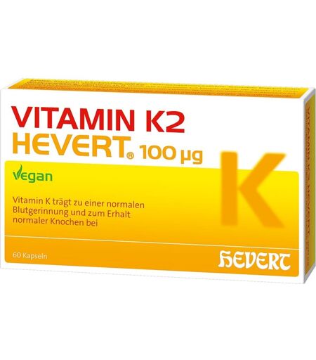 Anwendungsgebiet von Vitamin K2 Hevert 100 [my]g KapselnVitamin K2 Hevert 100 [my]g Kapseln ist ein Nahrungsergänzungsmittel. Hochdosiertes Vitamin K-Produkt. Vitamin K ist von großer Bedeutung für die Gesundheit.