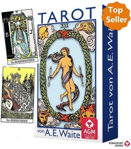 Diese weltweit bekanntesten und beliebtesten Tarotkarten wurden am Anfang des 20. Jahrhunderts von Arthur Edward Waite zusammen mit der Illustratorin Pamela Colman Smith gestaltet. Seitdem sind verschiedene Ausgaben dieses Kartendecks entstanden, mit etwas voneinander abweichender Farbgebung und unterschiedlichen Rückseiten.. Diese Version in der blauen Faltschachtel hat als Kartenrückseite das Rosenkreuz auf blauem Grund. Sie enthält eine Anleitung à 32 Seiten mit Texten von Rachel Pollack u.a. Es gibt sie in den Formatgrößen Standard, Pocket und Mini. Diese Ausgabe ersetzt die angekündigte Miniausgabe der Premium-Reihe (4250375102243), die nicht erscheinen wird. ...
