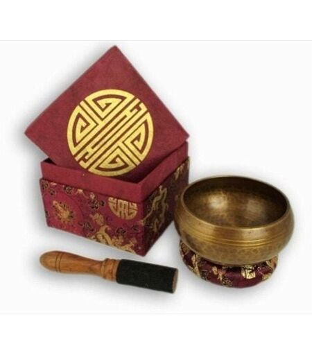 Klangschalen-Center GmbH Klangschale in Antik-Optik mit dekorativer Brokat-Box mit Aufdruck