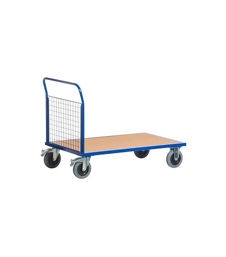 Der hilft garantiert und muss nicht einmal gefragt werden!Mal wieder viel zu transportieren und keine Helfer in Sicht? Kein Problem! Das schaffen Sie auch alleine! Und zwar mit Hilfe des Rollcart Stirnwagens. Leicht und locker lassen sich auf diesem Stirnwagen aus einer stabilen, geschweißten Stahlkonstruktion Pakete, Päckchen oder sonstige Utensilien transportieren. Denn dieser Stirnwagen aus Winkelstahl und Quadratrohr ist äußerst robust und langlebig und mit einer blaugrauen TPE-Bereifung (thermoplastisches Elastomer) ausgestattet. Diese Bereifung garantiert einen geringen Anfahr-, Roll- und Schwenkwiderstand, was für Sie einen geringeren Kraftaufwand bedeutet. Hierbei sind 2 der Rollen Lenkrollen mit Feststellbremsen und 2 Rollen sind nicht drehbare Bockrollen. Dies gewährleistet einen sicheren Stand beim Be- und Entladen sowie eine gute Manövrierfähigkeit beim Transport. Die Ladefläche besteht aus einer Holzwerkstoffplatte (MDF-Platte) mit einer widerstandsfähigen Buche-Dekoroberfläche. Durch die hochwertige, blaue Pulverbeschichtung ist die Oberfläche des Rahmens dauerhaft vor Korrosion geschützt. Machen Sie sich an die Arbeit, mit dem Rollcart Stirnwagen werden Sie es auch alleine schaffen! ...