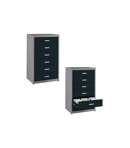 Hohe Qualität: der mauser client entry Karteischrank alu, anthrazitgrau 6 Schubladen 80,0 x 60,0 x 135,0 cmIn den Schubladen des mauser client entry Karteischranks alu, anthrazitgrau 6 Schubladen 80,0 x 60,0 x 135,0 cm finden jede Menge Akten und Mappen mühelos Platz. Besonders in Abteilungen mit vielen Akten oder Karteien macht so ein Möbelstück immer Sinn. Mit einer strukturierten Ordnung und dem schnellen Zugriff ist er das perfekte Hilfsmittel für jede Praxis, Personalabteilung oder auch in vielen anderen Branchen. So wird der Arbeitsalltag angenehmer und strukturierter. Das professionelle Büromöbel zur Ablage Ihrer A5 quer-Dokumente.Hier alle Details zu den SchubladenIn den 6 Schüben können Sie jede Menge Ihrer Ablagen unterbringen. Mit einer Tragkraft von bis zu 70,0 kg je Schub können Sie hier etliches unterbringen. Damit beim Herausziehen der Schübe dieses Möbelteil durch sein Eigengewicht nicht nach vorne kippt, wird das gleichzeitige Öffnen von zwei Schubladen und ein zu weites Herausziehen dank der Auszugssperre verhindert – denn Sicherheit muss sein. Die einzelnen Schubladen gleiten auf leichtgängigen kugelgelagerten Teleskopschienen – für ein müheloses Öffnen und Schließen. Sie erhalten hier eine komfortable Platzausnutzung und Anwendung dank des 100%igen Auszugs. Die Ausführung der Schübe ist dreibahnig und gewährt Ihren Dokumenten genügend übersichtlichen Stauraum. Mit folgendem, besonderen Vorteil punktet dieser Artikel außerdem: mit Selbsteinzug und Dämpfung. Im Beschriftungsfenster finden Etiketten Platz, auf denen Sie Auskunft darüber geben können, was sich im Inneren der Schublade befindet.Griffbereit!Moderne Bügelgriffe in der Farbe Alu dienen zum bequemen Öffnen und Schließen des Schrankes. Die Griffe bestehen aus strapazierfähigem Zink (ZAMAK®).Profitieren Sie von diesen VorteilenMit der Herstellergarantie – 5 Jahre – sind Sie auf der sicheren Seite. Dieses Produkt wird aufgebaut geliefert, damit Sie dies nicht selbst übernehmen müssen.Erfahren Sie noch mehr zu diesem ProduktDie erstklassigen Materialien und deren guten Eigenschaften zeichnen dieses Möbelobjekt aus. Der Korpus ist sehr langlebig und strapazierfähig, denn er besteht aus Stahl. Die edlen Farbgebung gibt diesem Möbelteil das gewisse Etwas. Dank dieses Designs mit dem Korpus in Alu und mit der Front in Anthrazitgrau erhalten Sie ein wahres Schmuckstück in Ihrem Raum. Um vor unerlaubten Zugriff zu schützen, ist das Möbelstück abschließbar. Aus folgenden Werten setzen sich die wichtigsten Maße zusammen: Breite: 80,0 cmTiefe: 60,0 cmHöhe: 135,0 cmDie Sockelfüße sind variabel verstellbar – ideal, um bei unebenen Böden die Höhe auszugleichen. Ein weiterer wichtiger Wert ist das Gewicht – es liegt bei 128,5 kg.Brauchen Sie mehr Ordnung?Dann können Sie den mauser client entry Karteischrank alu, anthrazitgrau 6 Schubladen 80,0 x 60,0 x 135,0 cm gleich hier in unserem Online-Shop bestellen und erhalten die Lieferung im Handumdrehen. ...