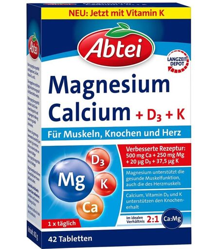 Personen, die gerinnungshemmende Arzneimittel (vom Cumarin-Typ) einnehmen, sollten vor dem Verzehr von Vitamin-K-haltigen Nahrungsergänzungsmitteln ihren Arzt befragen. Abtei Magnesium Calcium+d+k Tabletten können in Ihrer Versandapotheke www.apotheke.at erworben werden. ...