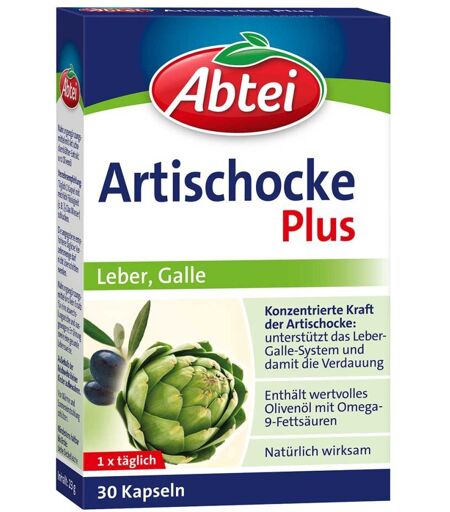 Anwendungsgebiet von Abtei Artischocke Plus KapselnAbtei Artischocke Plus Kapseln enthalten einen hochwertigen Extrakt aus Artischockenblättern, der die Leber-Gallentätigkeit anregt und so die Produktion von Gallenflüssigkeit fördert und die Fettverdauung unterstützt. Außerdem enthalten Abtei Artischocke Plus Kapseln wertvolles Olivenöl mit Omega-9-Fettsäuren. Wirkstoffe / Inhaltsstoffe / ZutatenZutaten von Abtei Artischocke Plus Kapseln: Natives Olivenöl extra (38,6%) wässriger Artischockenblätter-Extrakt (3-5:1) (28,3%) Maltodextrin Gelatine Farbstoff Eisenoxide und Eisenhydroxide.