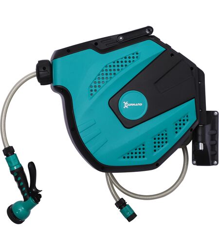 DURHAND Wandschlauchbox Schlauchtrommel 15 m mit Multibrause 180° schwenkbar Frostschutz -5 bis 45 °C Kunststoff Grün Schwarz .de