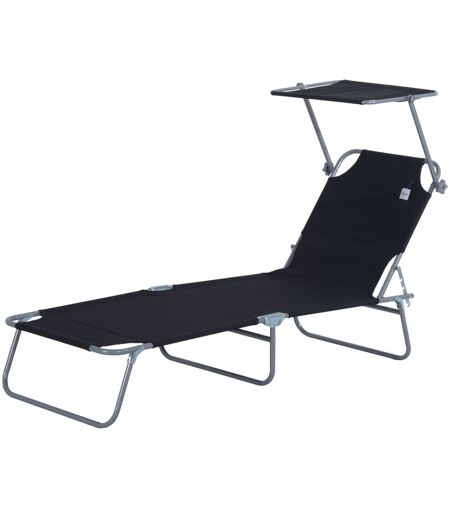 Outsunny Sonnenliege Gartenliege klappbar mit Sonnenschutz 187x58x36 cm in Schwarz, ideal für Terrasse & Balkon .de