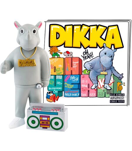 Mit der Tonie Hörfigur können die Kids ab fünf Jahren das kindgerechte Debütalbum "Oh Yeah!" vom rappenden Nashorn DIKKA hören. Tonie Hörfigur von tonies Reihe: DIKKA Titel: Oh Yeah! Laufzeit: ca. 36 Minuten technische Details: magnethaftend, handbemalt, integrierter NFC-Chip Lieferumfang: Hörfigur, Booklet/Bedienungsanleitung ab 5 Jahren geeignet deutschsprachig DIKKA ist ein großes, graues und gut gelauntes Rhinozeros mit einem dicken Bauch und einer Menge Verstand. Er nimmt die kleinen Hörer bei der Hand und geht gemeinsam mit ihnen auf die Suche nach den wirklich wichtigen Fragen des Lebens. Dabei beweist er, dass Rap nicht nur etwas für Erwachsene ist, sondern dass auch Kinder Spaß daran haben können. Tonies sind Hörfiguren für die Toniebox. Sie machen Hören anfassbar, denn mit ihnen bedient man die Toniebox. Man kann sie aber auch sammeln und mit ihnen spielen. Um der Geschichte zu lauschen, stellt man die Hörfigur einfach auf die Toniebox. Hinweis Die Toniebox ist nicht im Lieferumfang enthalten – bitte separat bestellen. Bitte beachten: Eine Rückgabe ist nur mit ungeöffneter Originalverpackung möglich. Wir bitten um Dein Verständnis. ...