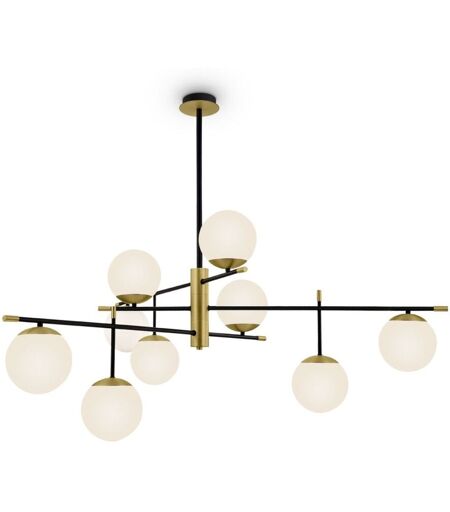 Metallbeschläge in mattem Gold. Kugelförmige Lampenschirme aus geblasenem Milchglas. Trendige Asymmetrie im Design. Lichtquelle: Leuchtmittel mit einer Fassung Е14. ...
