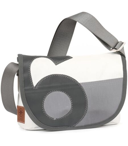 360° Taschen Perle Umhängetasche weiß / Balken grau, Zahl grau, Gurt grau