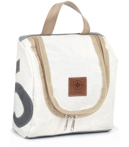 360° Taschen Matrose XL Kulturbeutel weiß, Zahl grau, Gurt beige
