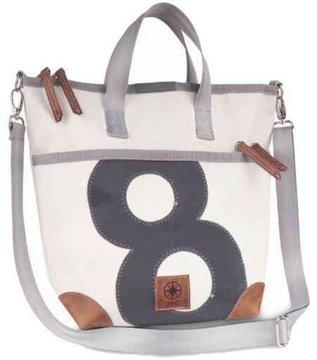 360° Taschen Deern Mini Schultertasche weiß, Zahl grau, Gurt beige mit Karabinern