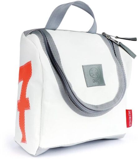 Der 360° Taschen Matrose XL Kulturbeutel sieht nicht nur gut aus, sondern ist auch praktisch entworfen. Wer kennt es nicht: Man ist unterwegs und findet im Bad keinen Platz für seinen Kulturbeutel. Schluss damit, denn dank des genialen Hakens des 360° Taschen Kulturbeutels kann der Kulturbeutel über die Dusche oder an die Heizung gehängt werden. Dank der durchdachten geräumigen Aufteilung mit fünf Fächern findet man sich immer in dem aufklappbaren Kulturbeutel zurecht. Duschgel und Shampoo finden stehend Platz im Matrose XL Kulturbeutel. Schnittig urban und aus recyceltem Segel hergestellt, bietet der 360° Taschen Matrose XL echten Mehrwert. Taschen aus Segeltuch und Persenning werden aus gebrauchten und neuen Materialien hergestellt. Der anziehende Materialmix sieht nicht nur gut aus, sondern kann einiges ab. Robust, stabil, wasserabweisend und widerstandsfähig sind die typischen E... ...