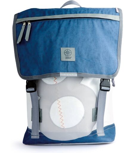 360° Taschen Landgang Rucksack Segel weiß-blau, Zahl hellgrau ,Gurt grau