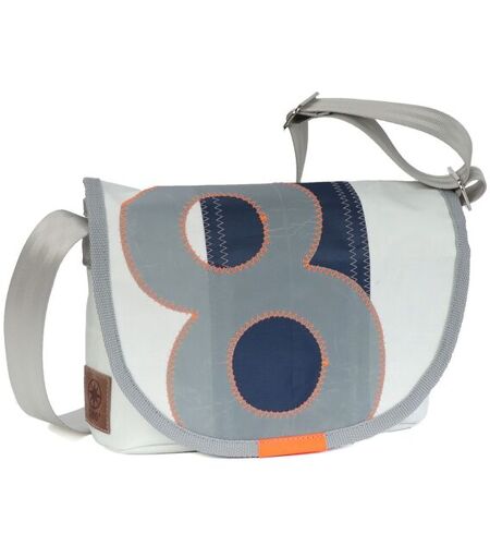 360° Taschen Perle Umhängetasche weiß / blauer Streifen, Zahl hellgrau, Gurt grau