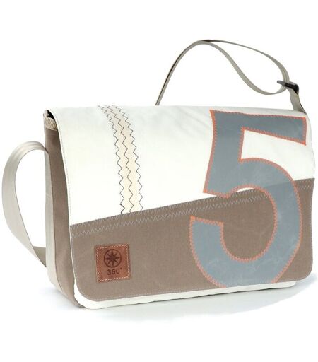 360° Taschen Barkasse Mini Laptoptasche weiß / Balken Persenning taupe, Zahl hellgrau, Gurt beige