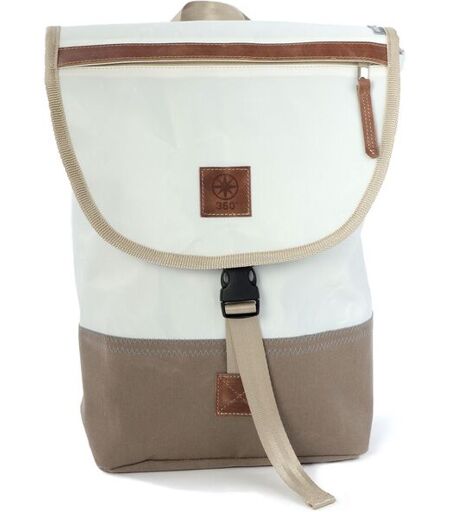 360° Taschen Landgang Mini Rucksack weiß / Balken Persenning taupe, Gurt beige