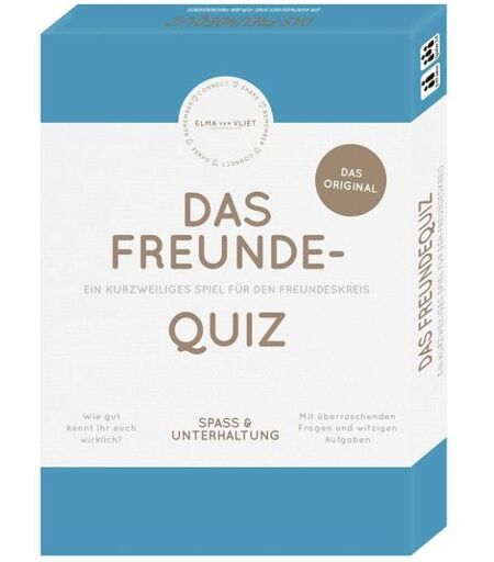 Wie gut kennt ihr euch? Lustiges Frage- und Konversationssspiel für Freunde Das Konversationsspiel von Bestseller-Autorin Elma van Vliet enthält 110 ebenso unterhaltsame wie persönliche Fragen, die Freunde einander reihum stellen: Wer von euch ist der größte Morgenmuffel? Wer kennt sich am längsten und woher? So entstehen spannende Gespräche und lustige Erinnerungen werden geweckt. Das Freundequiz ist das perfekte Gesellschaftsspiel für einen ausgelassenen Abend mit Freunden, nachdem ihr euch garantiert noch viel besser kennt als zuvor. Konversationsspiel für 3–8 Personen 110 stabile Spielkarten (63 x 88 mm) in den Kategorien »Weißt du es?«, »Erzähl mal!« und »Aktion« mit Spielanleitung in einer hochwertigen Box Originelles Mitbringsel für einen Spieleabend mit Freunden Fragespiel für Erwachsene mit 110 Karten (Maße: 12,0 x 17,0 cm) Schenke schöne Momente mit deinen Freunden – Viel Spaß beim Quatschen und Austauschen! ...