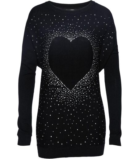 bonprix Longpullover mit Herz-Dekostein-Applikation schwarz 36/40/44/48/52/56