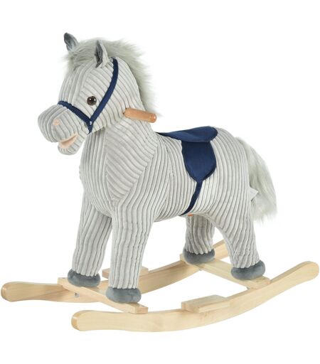 HOMCOM Kinder Schaukelpferd Baby Schaukeltier Pferd mit Tiergeräusche Spielzeug Haltegriffe für 36-72 Monate Plüsch Grau 73 x 35 x 64 cm