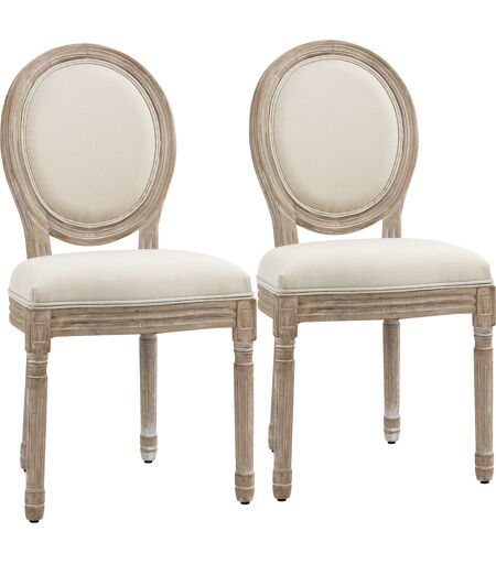 HOMCOM 2er Set Esszimmerstühle Vintage Küchenstuhl Polsterstuhl mit Rückenlehne Linen-Touch Gummiholz Cremeweiß+Natur 49 x 56 x 96 cm