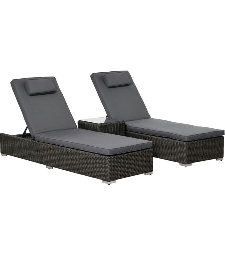 Outsunny Poly-Rattan Sonnenliege 3-tlg. Gartenliege mit 6-fach verstellbarer Rückenlehne, Beistelltisch & Nackenkissen, Aluminium Grau 60 x 195 x 86 cm .de